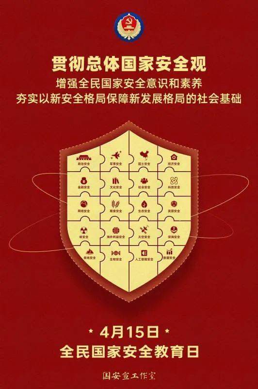 《中華人民共和國***法》第十四條明確規(guī)定,每年的4月15日是全民***教育日。今年的4月15日是第八個全民***教育日,主題是“貫徹總體***觀,增強全民***意識和素養(yǎng),夯實以新安全格局保障新發(fā)展格局的社會基礎。
